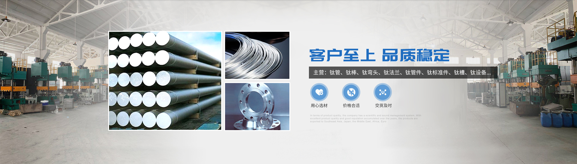 本公司的主營產(chǎn)品鈦制品有,鈦管,鈦棒,鈦彎頭,鈦法蘭,鈦管件,鈦標(biāo)準件,鈦槽,鈦設(shè)備,鈦沖壓彎頭等。所生產(chǎn)各種規(guī)格的鈦制品主要運用于化工、電鍍、石油、電子、環(huán)保、海洋等領(lǐng)域"以質(zhì)量求生存,靠服務(wù)求發(fā)展“為宗旨,客戶的滿意是我們的追求,歡迎各界用戶來函來電,傳真,洽談貿(mào)易。